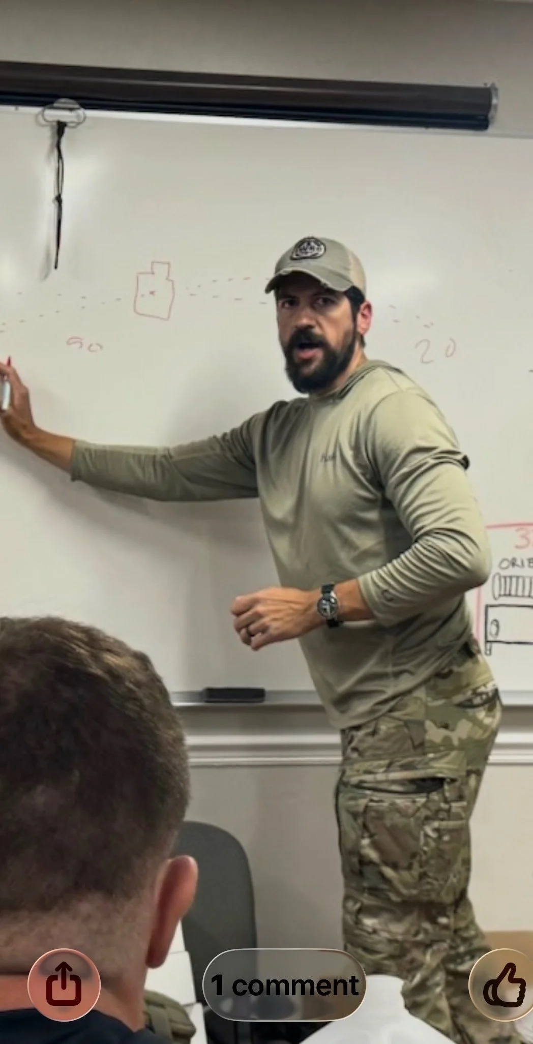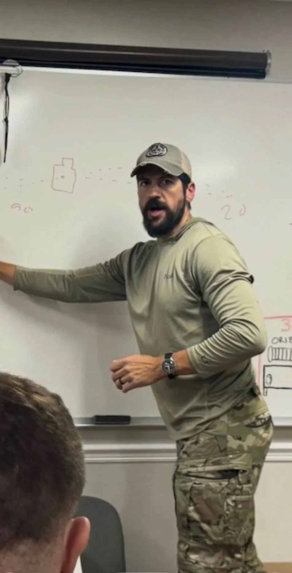 His instructional background includes rifle and pistol mechanics, force-on-force training, and close quarters battle (CQB), with a strong emphasis on performance under stress.